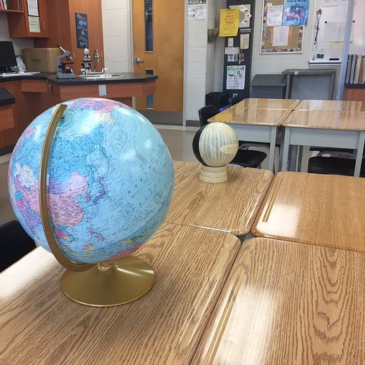 Buscando información sobre la mejor manera de ilustrar este cambio del punto de vista, me encontré con este tuit donde se cuenta con una misma foto de un globo terráqueo y una esfera que hace las veces de Luna, colocada del revés.